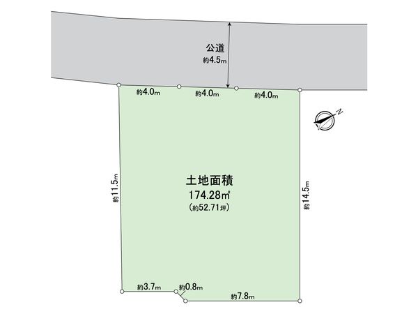 | 接道状況 | 北西側: 約 4.5m (公道) |