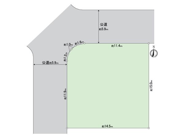 | 接道状況 | 北側: 約 5.9m (公道)、西側: 約 5.9m (公道) |