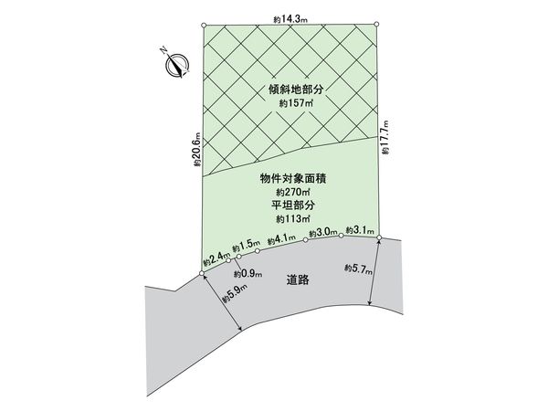 | 土地面積 | 270㎡(約81.67坪) ※但し傾斜地面積有 (約157㎡) |