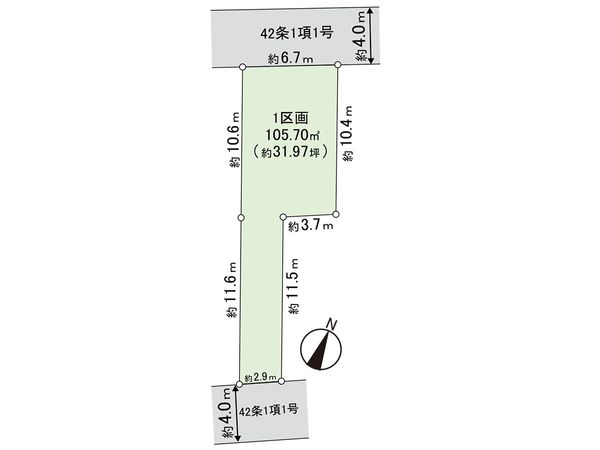 | 土地面積 | 105.7㎡(約31.97坪) ※路地状敷地部分約34.5㎡含む |