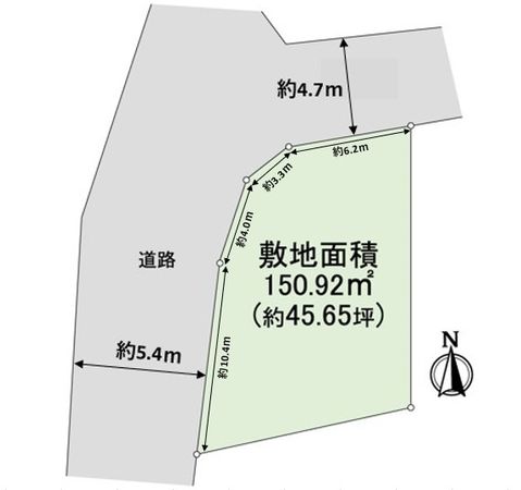 | 接道状況 | 南東側: 約 5.4m (公道)、北東側: 約 4.7m (公道) |
