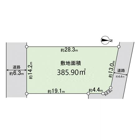 | 接道状況 | 南側: 約 6.3m (公道)、北側: 約 4.4m (公道) |