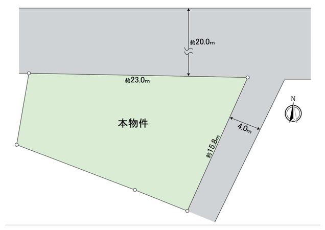 | 接道状況 | 北側: 約 20m (公道)、南東側: 約 4m (公道) |