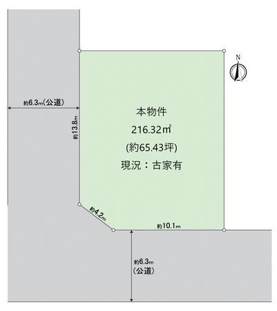 | 接道状況 | 南側: 約 6.3m (公道)、西側: 約 6.3m (公道) |