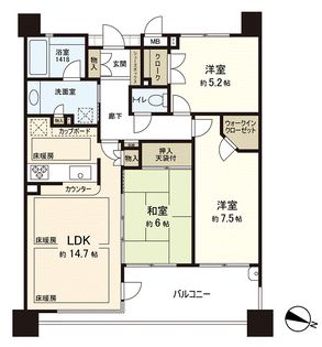 3LDK / 76.8㎡ / 3階