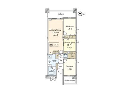 2LDK / 53.98㎡ / 12階