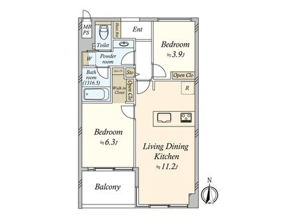 2LDK / 46.04㎡ / 4階