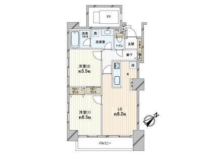 2LDK / 52.04㎡ / 6階