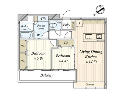 2LDK / 55.25㎡ / 34階
