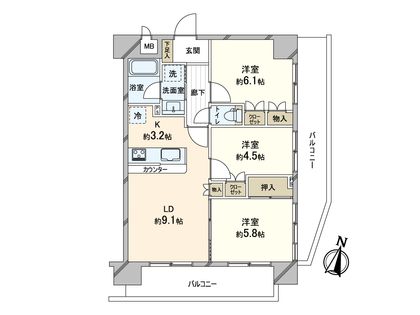 3LDK / 63.02㎡ / 4階