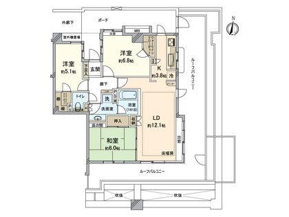 3LDK / 75.77㎡ / 6階