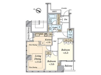 2LDK / 64.86㎡ / 13階