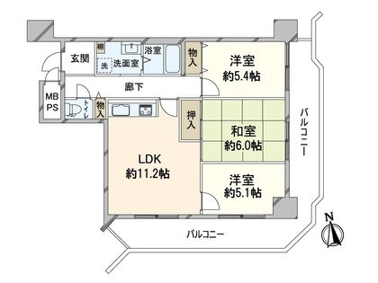 3LDK / 63.72㎡ / 5階