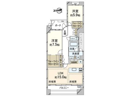 2LDK / 71.75㎡ / 6階