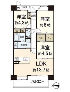 3LDK / 62.99㎡ / 6階