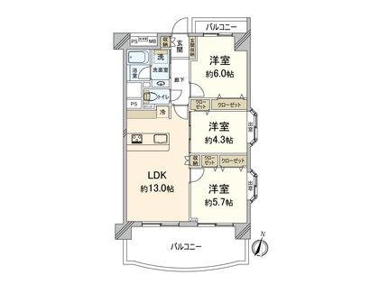 3LDK / 64㎡ / 5階