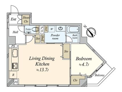 1DK / 47.13㎡ / 2階