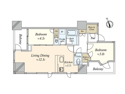 2LDK / 57.73㎡ / 15階