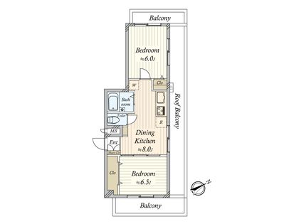 2DK / 33.44㎡ / 2階