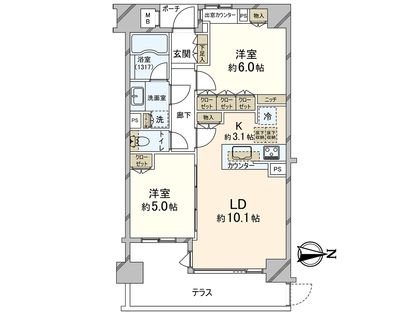 2LDK / 56.64㎡ / 1階