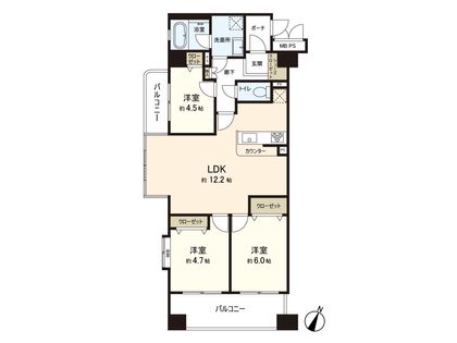3LDK / 72.2㎡ / 6階