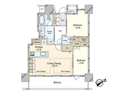 2LDK / 60.93㎡ / 6階