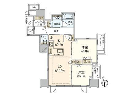 2LDK / 58.05㎡ / 13階