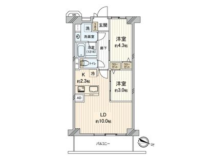 2LDK / 45.11㎡ / 2階