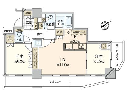 2LDK / 62.01㎡ / 8階