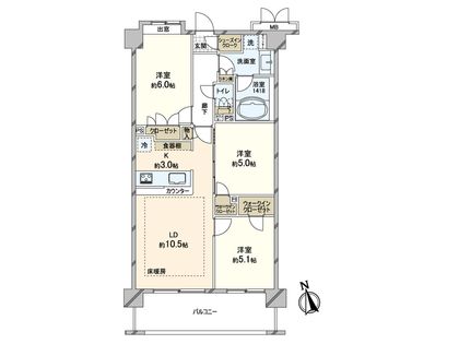 3LDK / 65.4㎡ / 3階