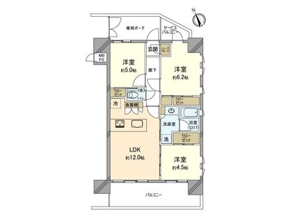 3LDK / 62.08㎡ / 3階