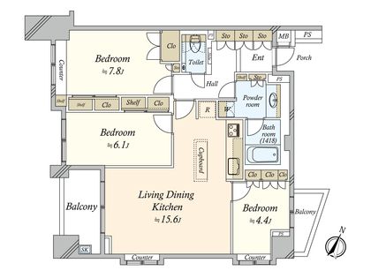 3LDK / 79.12㎡ / 7階