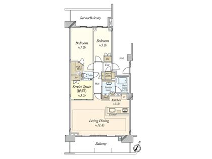 2SLDK / 72.65㎡ / 7階