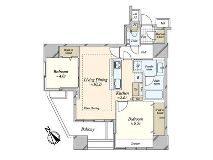2LDK / 56.16㎡ / 12階