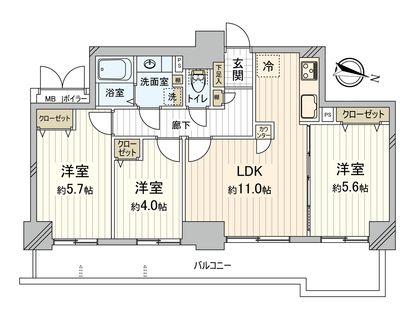 3LDK / 60.84㎡ / 16階