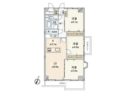 3LDK / 63.8㎡ / 5階