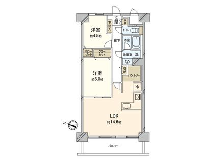 2LDK / 64.4㎡ / 1階
