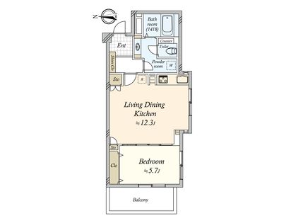 1LDK / 47.56㎡ / 9階