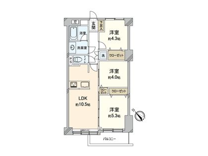 3LDK / 54㎡ / 3階