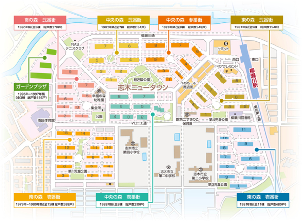 「志木ニュータウン 南の森弐番街」は、東武東上線「柳瀬川駅」から徒歩約5分の距離に位置しており、日々の通勤や通学、さらにはお出かけにも便利な立地です。総戸数378戸のこのマンションは、多くの居住者が新たな生活を築いています。 志木ニュータウンは、鹿島建設が初の大規模住宅団地の開発を行いました。世帯数は約3000世帯、エリア内の商店街(ぺあモール)、商業ビル(志木ニュータウン鹿島ビル)の商業施設や、ニュータウンの北側には柳瀬川が流れており、春になると土手の桜並木が楽しめ、ニュータウンの中心を通るマロニエ通りにはケヤキ・ハナミズキ・ツツジ・クチナシ等、たくさんの草花木が植えられている緑と共生ができる住環境です。