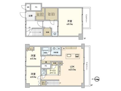 2LDK / 68.7㎡ / 2階