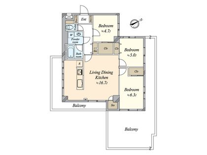 3LDK / 72.95㎡ / 3階