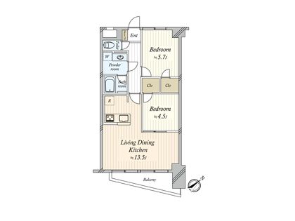 2LDK / 55㎡ / 8階