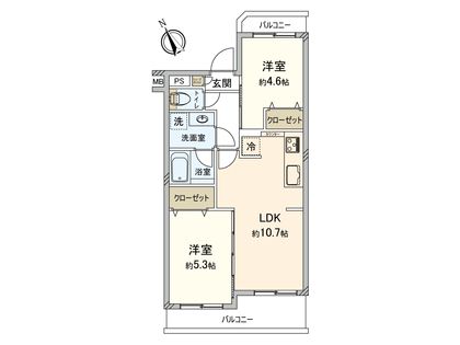 2LDK / 46.62㎡ / 2階