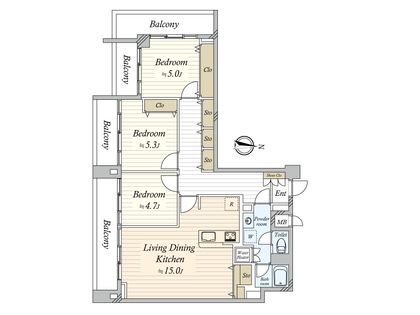 3LDK / 84.01㎡ / 12階
