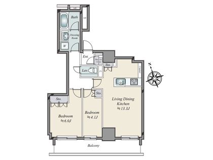 2LDK / 56.33㎡ / 18階