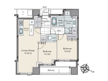 2LDK / 60.6㎡ / 10階