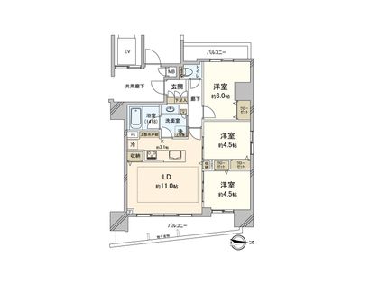 3LDK / 65㎡ / 6階