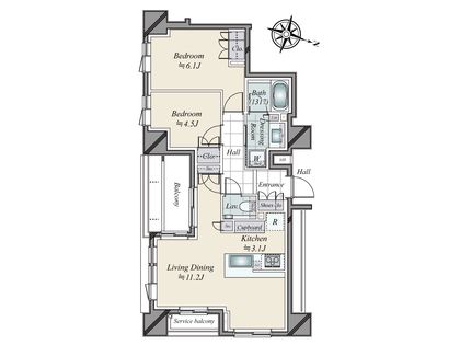 2LDK / 56.68㎡ / 8階