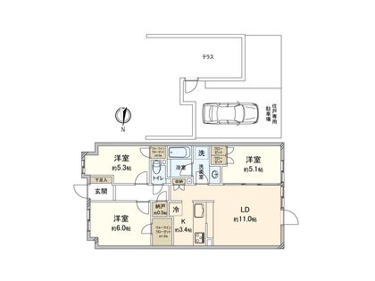 3LDK / 68.6㎡ / 1階